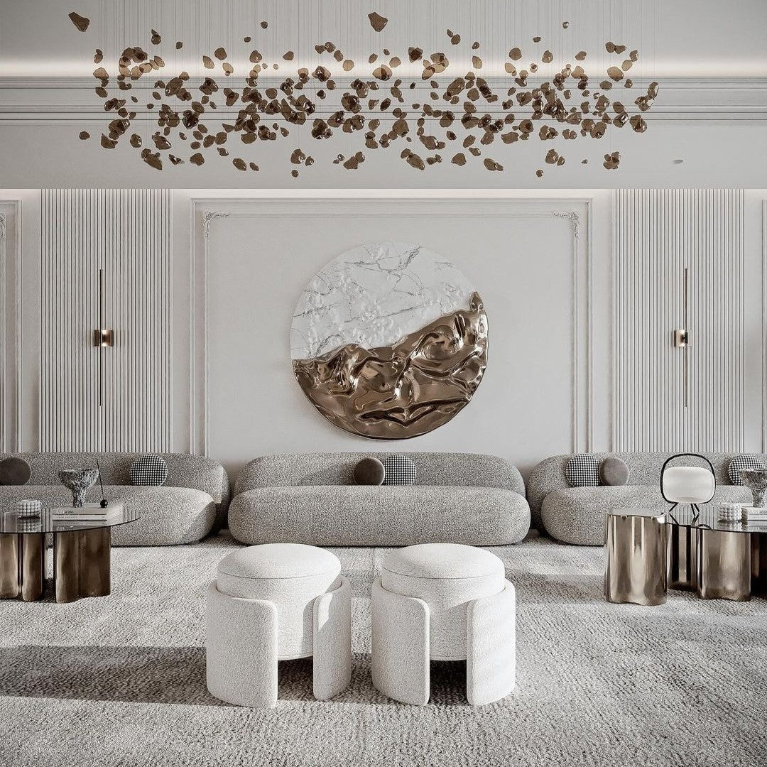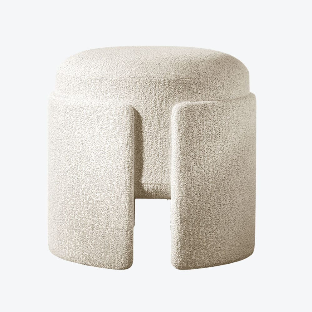 Ottoman tapizado en tela personalizada. Simula una carcasa que envuelve un asiento aéreo.